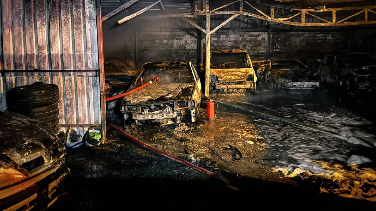 Yangında 10 araç kullanılamaz hale gelirken, 3 araçta da hasar oluştu.